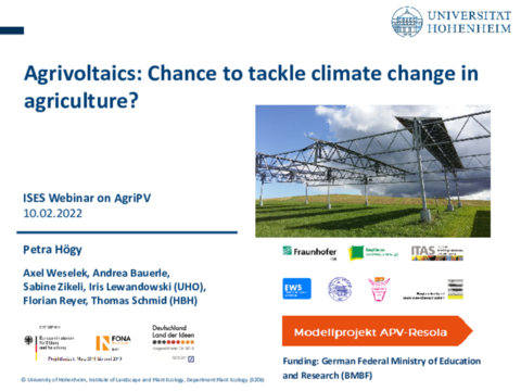 Petra will present on: Agrivoltaics: Chance to tackle climate change in agriculture?