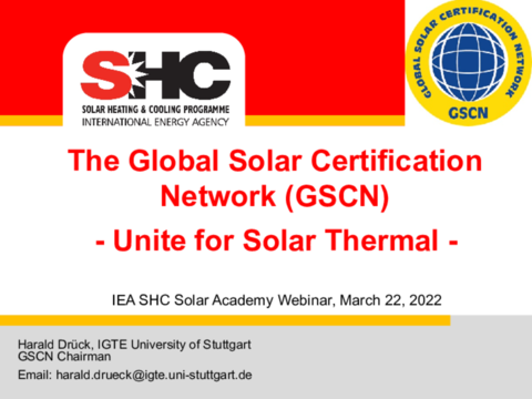 IEA SHC Solar Academy on: Global Solar Certification Network (1)