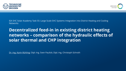 Presentation Title: Decentralized feed-in in existing district heating networks - comparison of the hydraulic effects of solar thermal and CHP