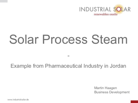 Martin will introduce solar heat in the form of “solar steam” used for industry processes, specifically introducing a solar steam project at RAM Pharma in Jordan which was started in 2017.