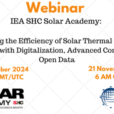 November Webinar: IEA SHC Solar Academy: Boosting the Efficiency of Solar Thermal District Heating with Digitalization, Advanced Control and Open Data