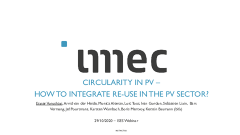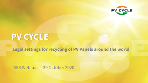 With more and more PV modules reaching the end of their life-span, end-of-life processes and recycling is becoming an ever more relevant topic. With this webinar, ISES is happy to welcome experts from research and industry focusing on different opportunities surrounding the end-of-life of PV modules and the webinar will cover a legal overview of PV recycling around the world, opportunities for the re-use and recycling of modules.