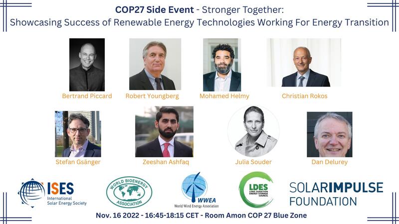 On November 16, ISES and partners hosted an official COP27 side-event titled, “Stronger Together: Showcasing Success of Renewable Energy Technologies Working For Energy Transition” at COP27 in Egypt.