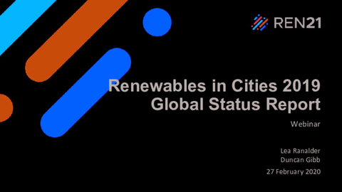 This February, ISES is happy to once again welcome REN21 for one of our monthly webinars - this time introducing the first ever Renewables in Cities 2019 Global Status Report.
