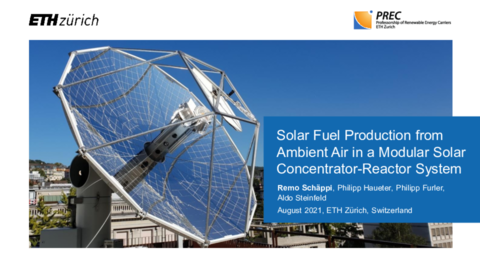 - Remo Schäppi (ETH Zürich): Solar Fuel Production From Ambient Air in a Modular Solar Concentrator-Reactor System